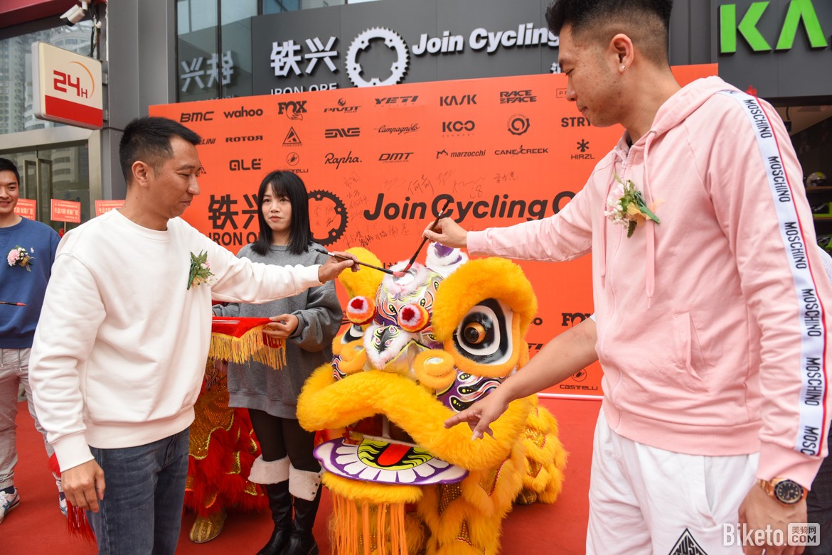 ▲汇盛体育李伟全和香港铁兴公司总经理陈嘉豪共同为醒狮点睛,寓意事业兴旺,财源滚滚,吉祥如意,大展宏图