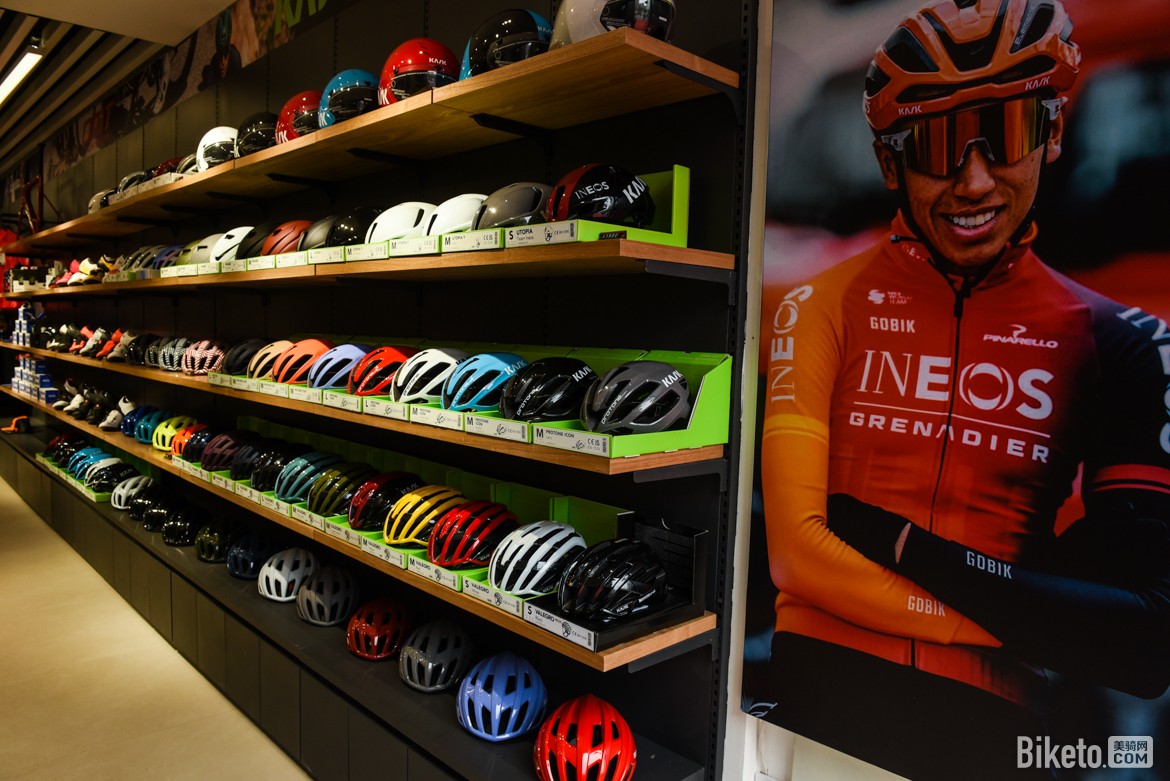 ▲进店就能看到满墙的全系列KASK头盔整齐陈列