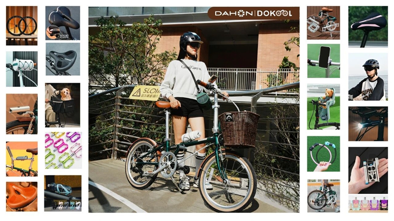 DAHON | DOKOOL 专注打造高品质、有特色的骑行装备,覆盖你骑行生活中的方方面面。不论是保障安全的基础配件——如头盔、车灯、车锁,还是提升舒适与便利的车身装备——如坐垫、把套、手机支架与车包;甚至是面向深度玩家的性能升级件,如脚踏、座管与轮组,都有丰富选择。