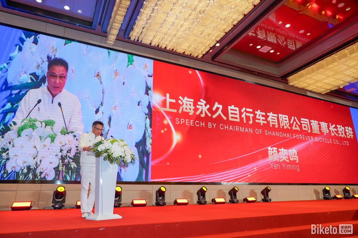 颜奕鸣董事长对所有今天到场的领导与嘉宾表达了衷心的感谢和热烈的欢迎!以“感恩”与“展望”为主线发表深情致辞。作为陪伴永久43年的亲历者,颜董深情回顾永久 85 载的风雨征程,更分享了永久未来的发展方向:“我们将继续以‘匠心’守‘初心’,在高端化、智能化、绿色化道路上稳步前行,为中国自行车产业贡献更多力量。”真挚的话语引发全场共鸣,掌声经久不息。