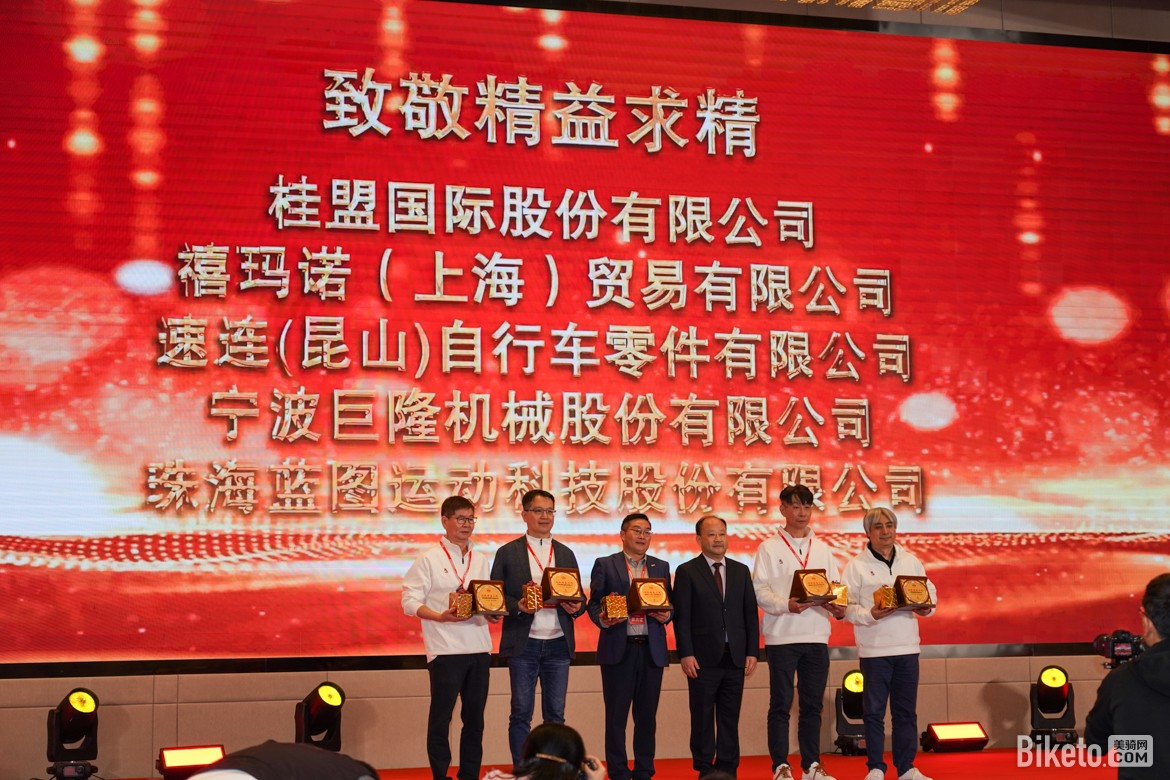 ▲致敬精益求精:桂盟国际股份有限公司、禧玛诺(上海)贸易有限公司、速连(昆山)自行车零件有限公司、宁波巨隆机械股份有限公司、珠海蓝图运动科技股份有限公司