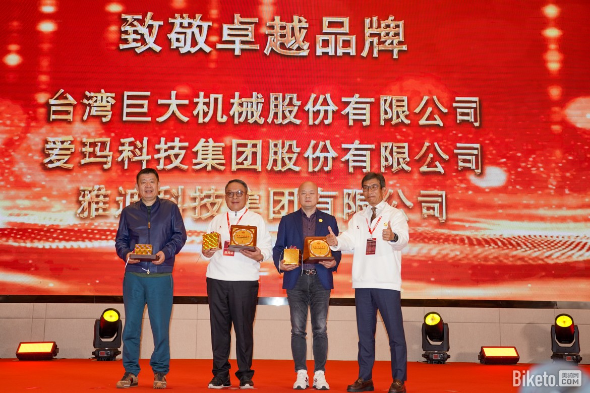 ▲致敬卓越品牌:台湾巨大机械股份有限公司、爱玛科技集团股份有限公司、雅迪科技集团有限公司