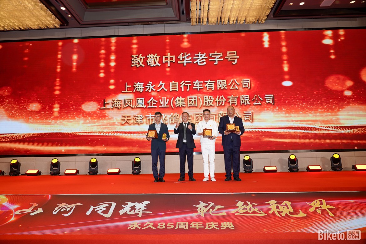 ▲致敬中华老字号:上海永久自行车有限公司、上海凤凰企业(集团)股份有限公司、天津市飞鸽集团有限公司