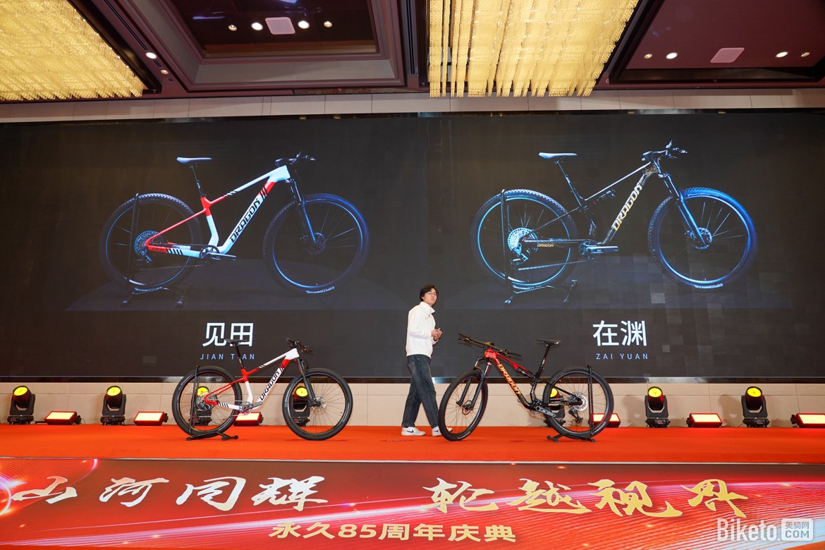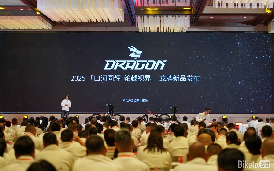 邢浩经理隆重揭晓了龙牌全新推出的四大新品阵容,包括:铁三车「帝江」、软尾山地车「云螭」、硬尾山地车「见田」与软尾山地车「在渊」。这四款车型的集体亮相,标志着龙牌在产品矩阵与技术实力上迈入了全新阶段。