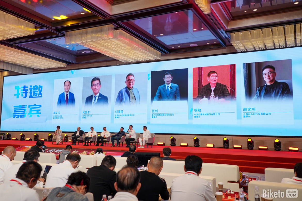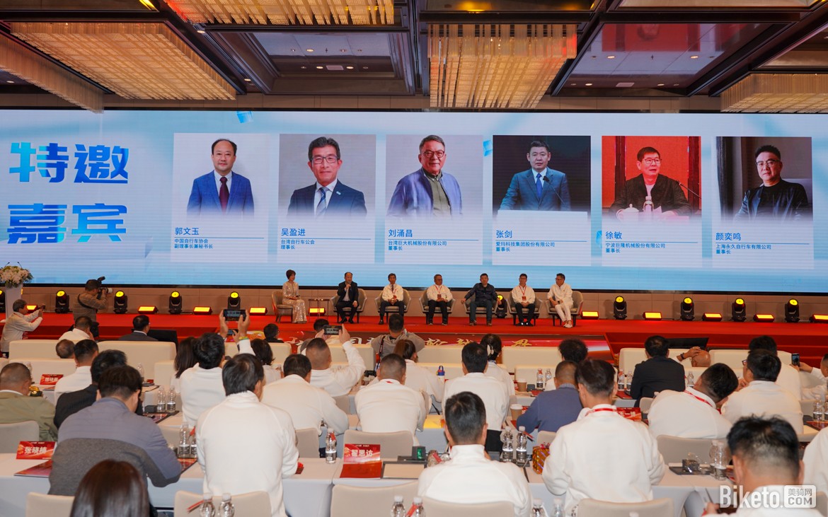 一场围绕 “海峡两岸产业发展” 的高峰论坛,成为庆典的 “智慧高光时刻”。中国自行车协会副理事长郭文玉先生、台湾自行车公会理事长吴盈进先生、台湾巨大机械董事长刘涌昌先生、爱玛科技董事长张剑先生、宁波巨隆机械董事长徐敏先生、上海永久董事长颜奕鸣先生六位重量级嘉宾同台,围绕三大议题深入探讨。