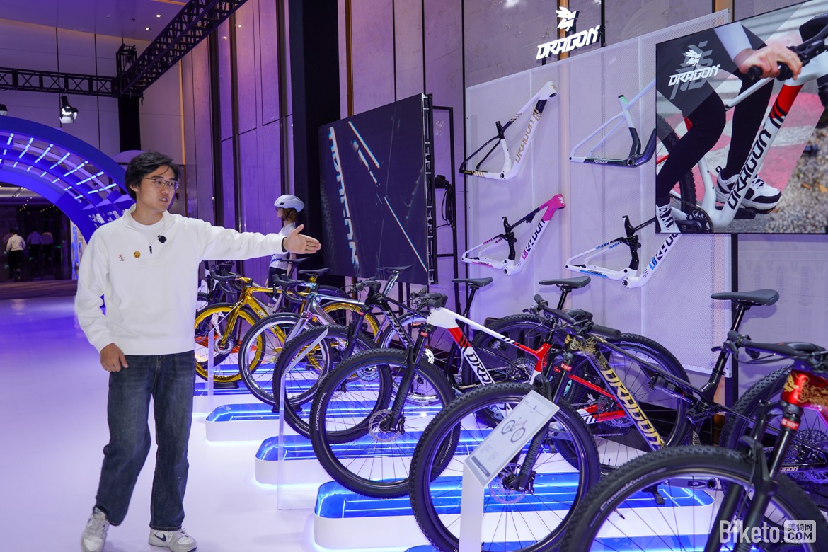 ▲产品经理为嘉宾介绍刚刚发布的龙牌山地车系列新品