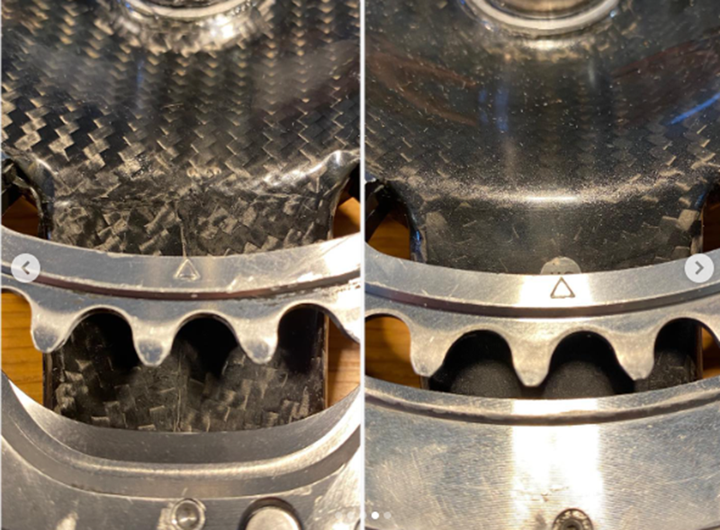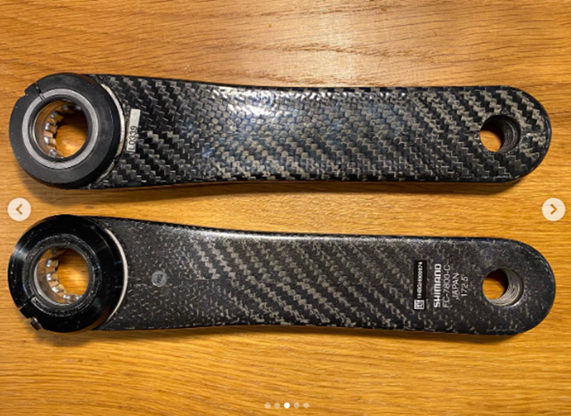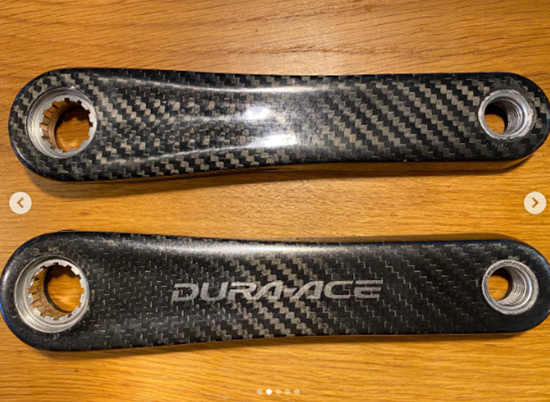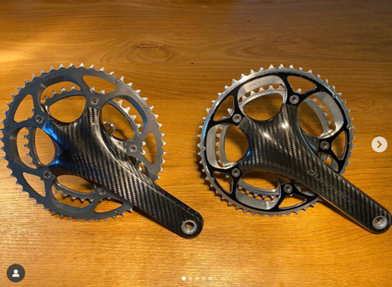 这款碳纤维牙盘产量极其稀少,外媒在eBay上发现其中一组近乎传奇的碳纤维牙盘正在出售,截至发稿时标价1200英镑(约合人民币11000 元),这笔钱足够买一套现代Dura-Ace 12速功率计牙盘还有找零。