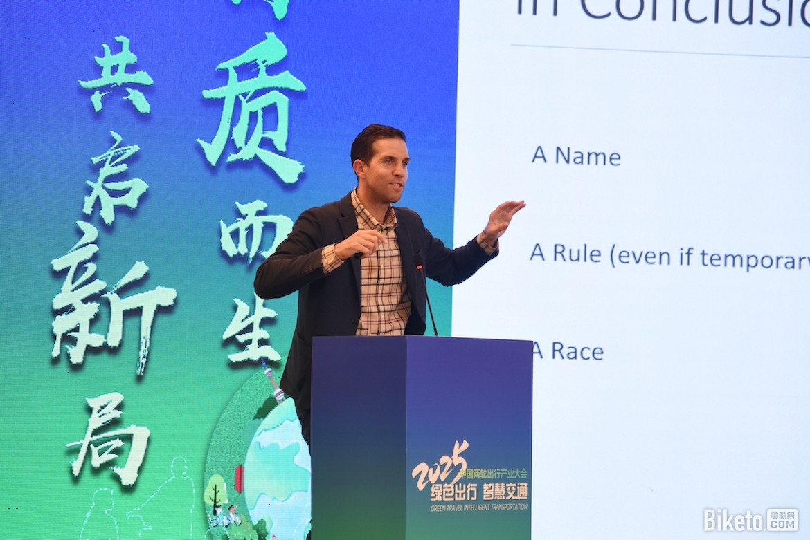 广州银三环机械有限公司董事长梁建雄以“从通勤工具到运动社交载体”为题发表演讲。他不仅指出了产品的升级方向,更从生活方式重构的层面,精准地道出了产业转型的核心。