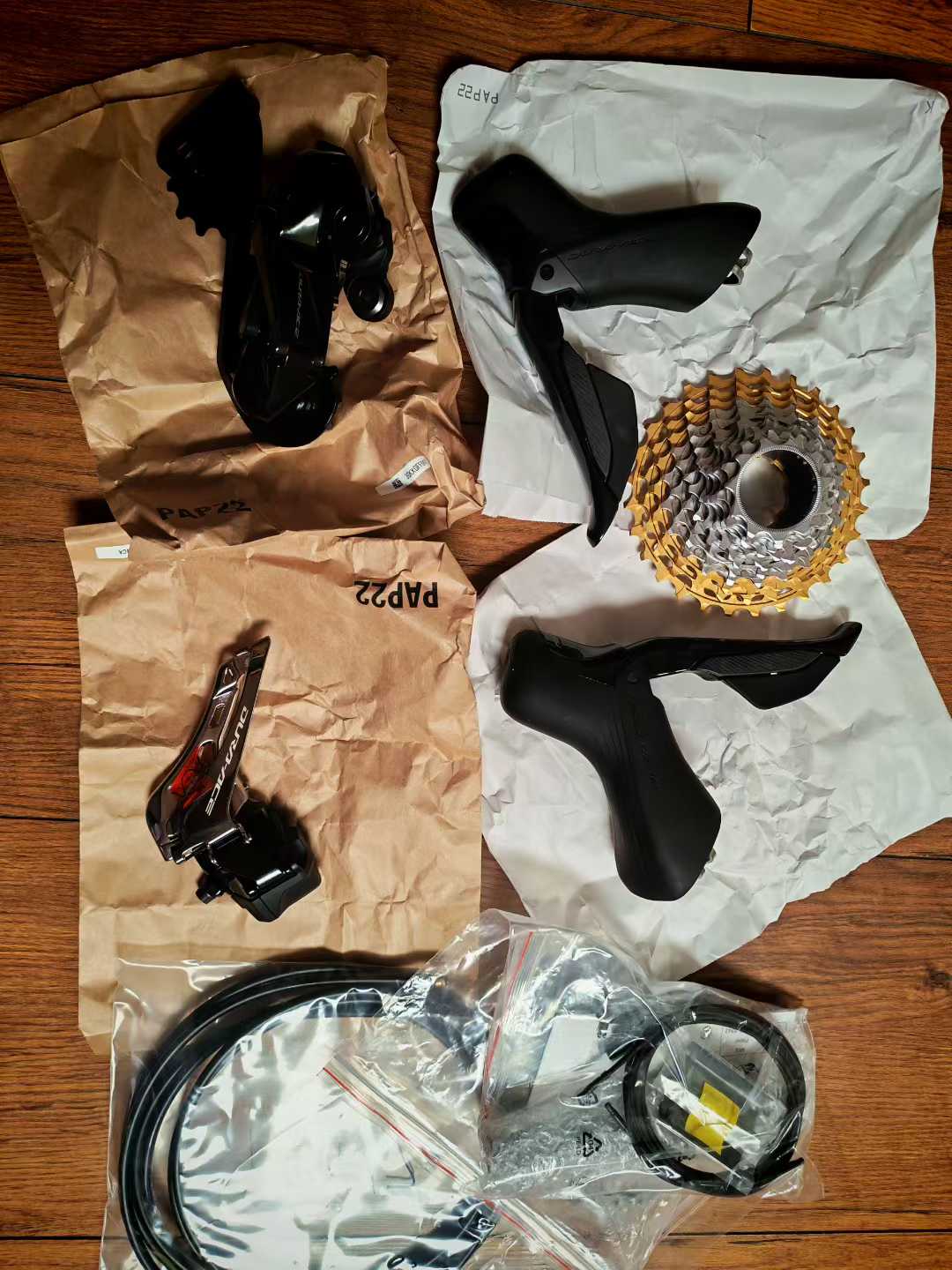 既然以轻量化为首要目标,那套件(电子部分)一定非DA莫属了(当然Red的11s机械更轻,但SW版的Aethos不兼容机械故放弃)。夹器在李维斯和C22之间纠结良久,最终还是选择了Lewis SLR(当然是因为金色的很好看啦)。