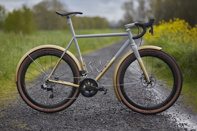 这是最经典的款式,搭配起来毫无违和感。全长挡泥板可以覆盖车轮的大部分,不仅可以保证自己干净,还能保证后面的人不被自己甩出的泥水溅到,可以说是非常友好了。只是对车架的要求比较高,现在市面上除了旅行车大部分车架都不支持这种挡泥板,不过用一些小配件也能解决。至于前后叉间隙够不够就真的只能看人品了……那些破风架什么的就死了这条心吧。