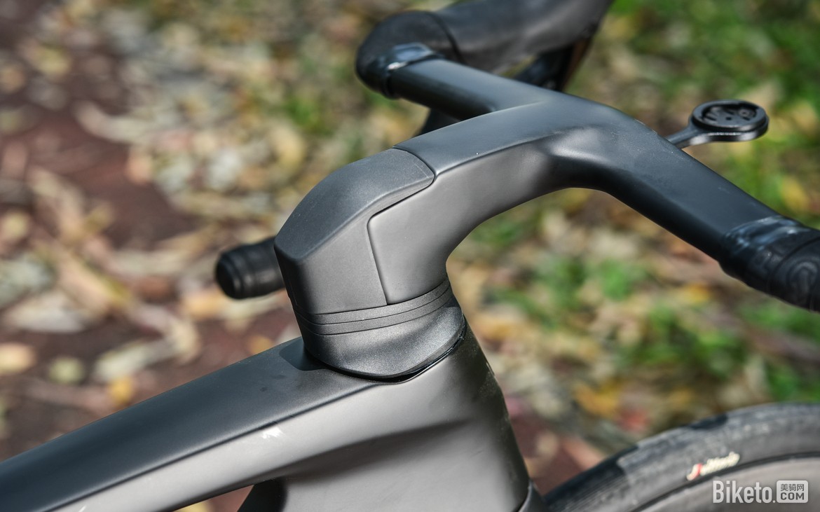 第七代MADONE车架的STACK计算是包含碗组盖的,所以调节垫圈时需要注意一下。不得不说,MADONE这套碗组外观设计还是很不错的,加了两个5mm垫圈也不会感觉突兀。