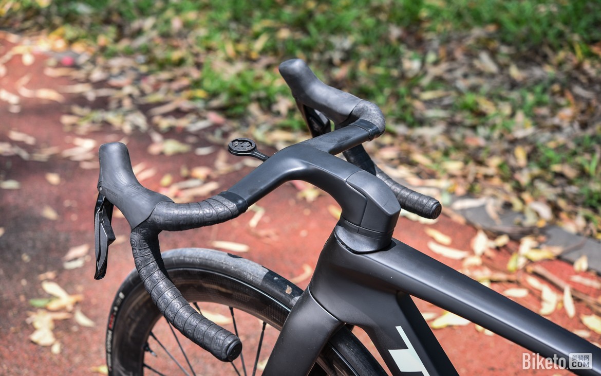 更换一体把后,车头正面的迎风面有很大优化。这种上下把宽度差距较大弯把安装手变后,手变会“撇”得比较厉害。一开始还以为自己会不习惯,但实际上路骑两次后,就适应了这种设定。