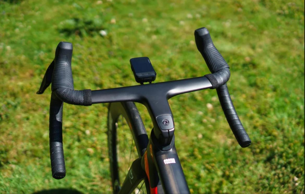 阿拉菲利普的 BMC ICS Carbon Aero 车把在刹车把位置的中心间距为 360×100mm,不过下把位展开后宽度达到 420mm,以便在冲刺或下坡时更好地控制车身。