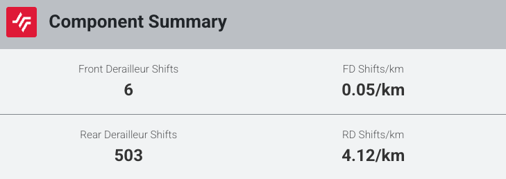 NO More FRAM不过倒还好,如今在超大飞轮的加持下,几乎不太用到小盘了,一场一百多公里的骑行,前拨就换档6次,这还是在我用的是序列换档,大盘时最大两个飞轮没用的情况下。