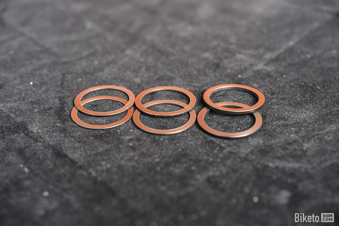 由于对应24mm轴心的车架和中轴宽度都比较一致,所以曲柄组配的垫圈也少一些,三个规格各一个。