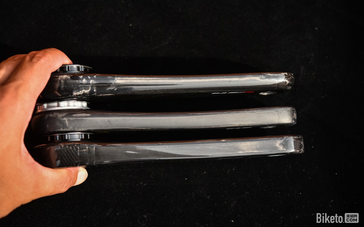 将三个型号的驱动侧曲柄放在一起,可以看出三款的造型差异还是比较大的,总有一款适合你。不知道大家觉得哪个型号的造型最好看?