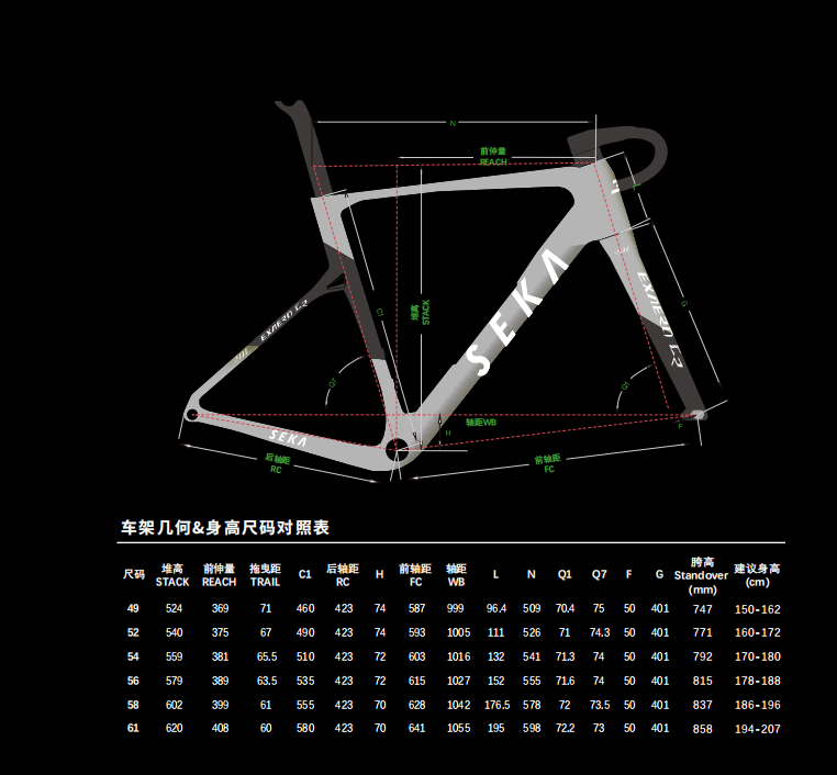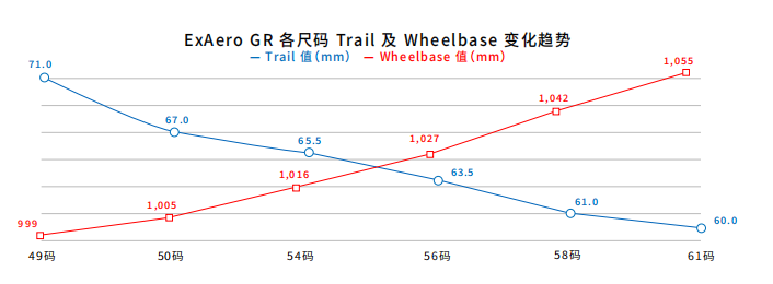 Exaero GR共提供6个尺码车架,15种规格一体把,2种后飘座杆(0mm/-15mm)。