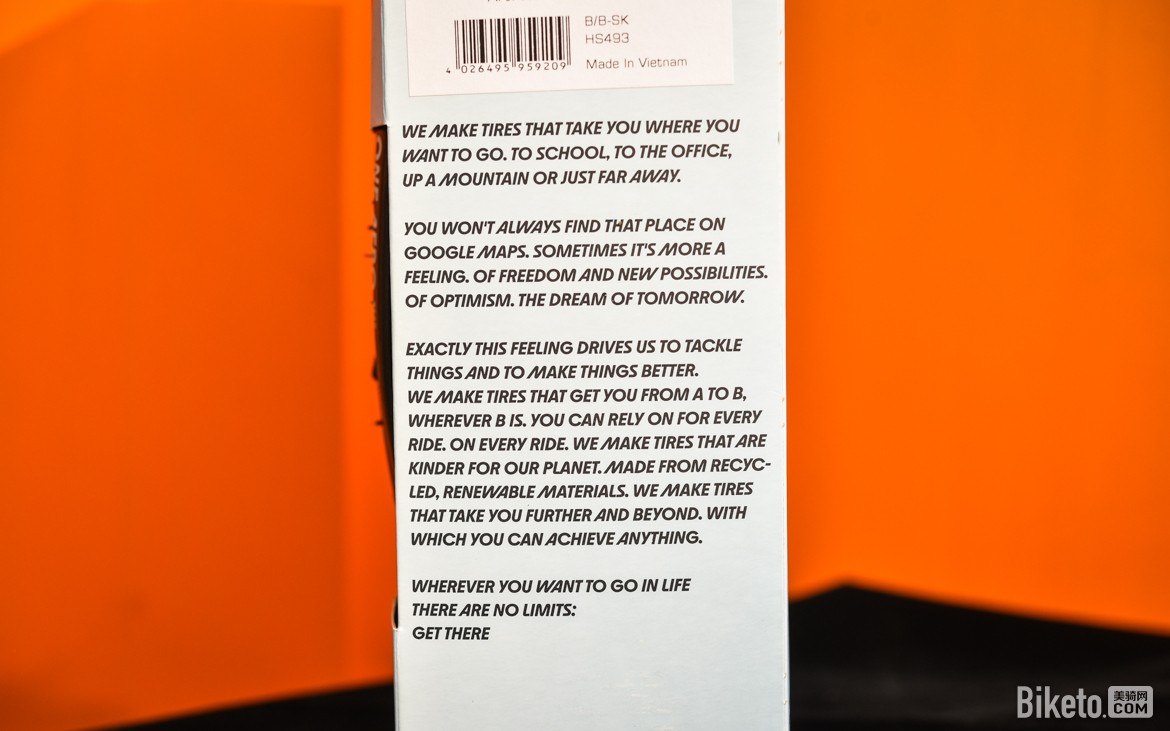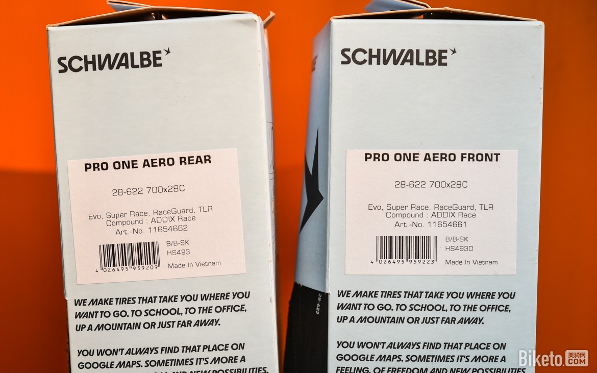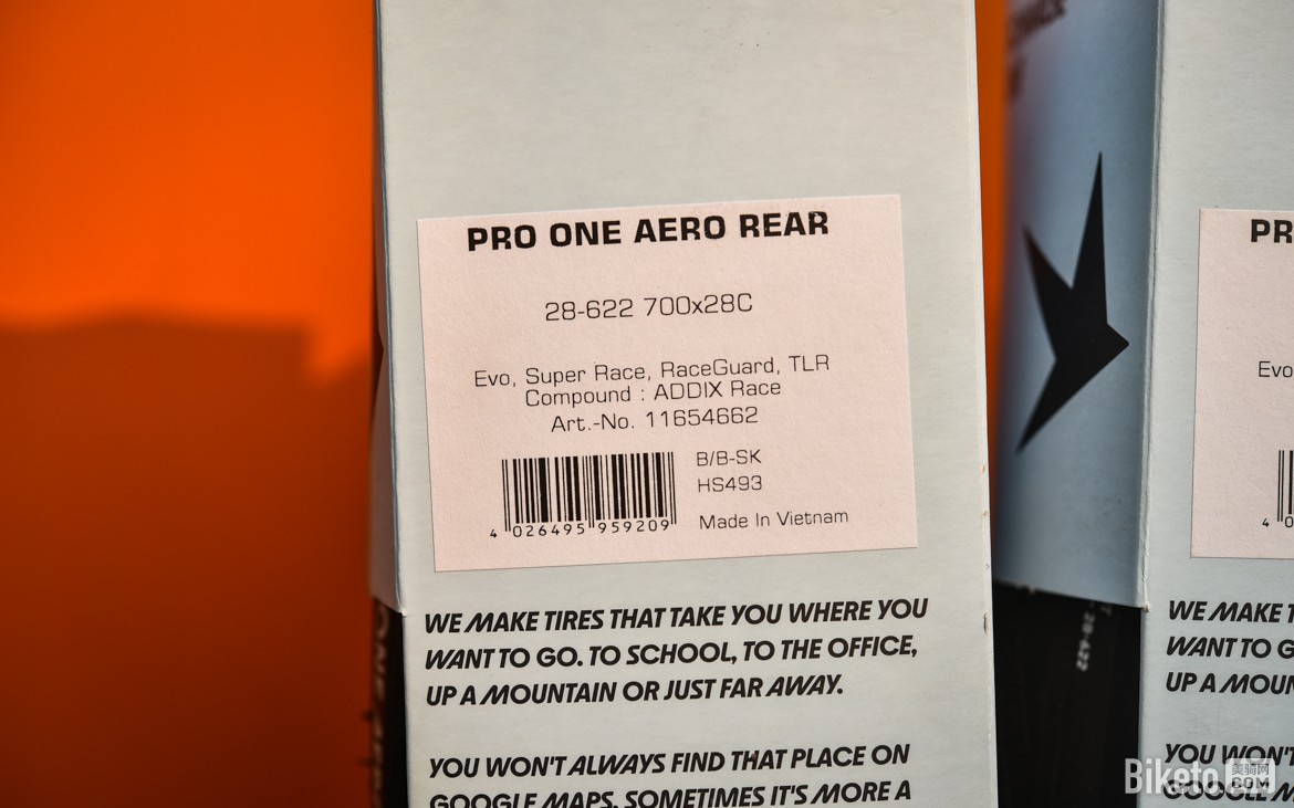 纸盒侧面还特意后胎使用大标、前胎使用小标来区分,还真和PRO ONE AERO轮胎设定挺般配的。