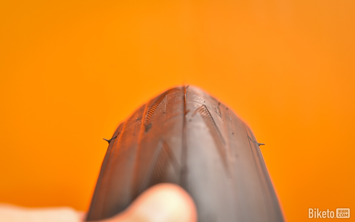 由于重量比之前的胎轻了不少,PRO ONE AERO在低速和爬坡时,会感觉比之前的胎更轻快一些,加速过程中提速更轻松。胎面厚度比主流的竞赛级真空胎稍厚一些,所以虽然感觉胎质比以前软了一些,但还有以前PRO ONE那种稍显生硬的路感。