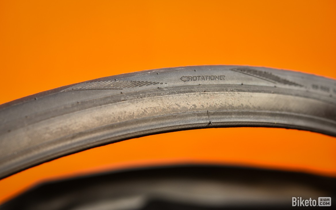 下面来看看PRO ONE AERO后胎,后胎的胎纹与前胎完全一样,但显然胎面的宽度要比前胎大一些。