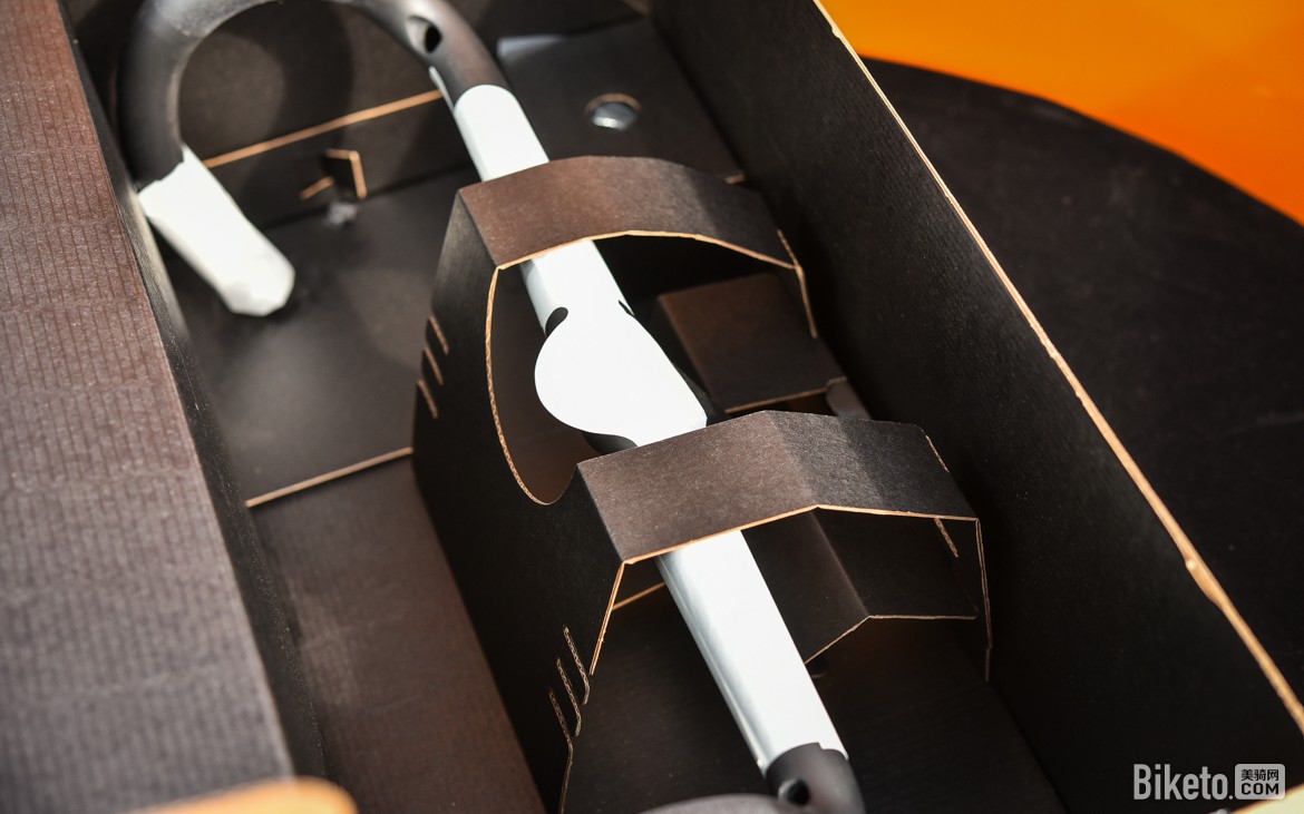 相比上一代那种泡泡纸装车把直接丢到盒子里那种简单粗暴的做法,新的ROVAL一体把显然更科学,通过在底部上切割出固定结构来固定车把。