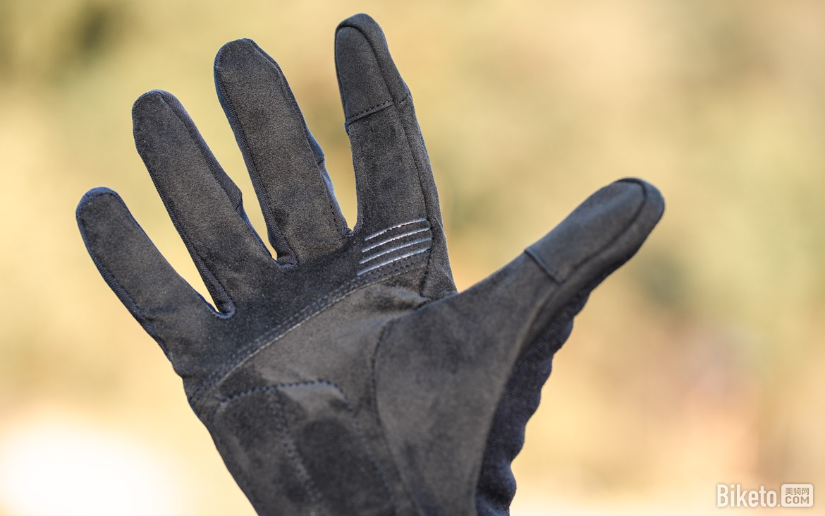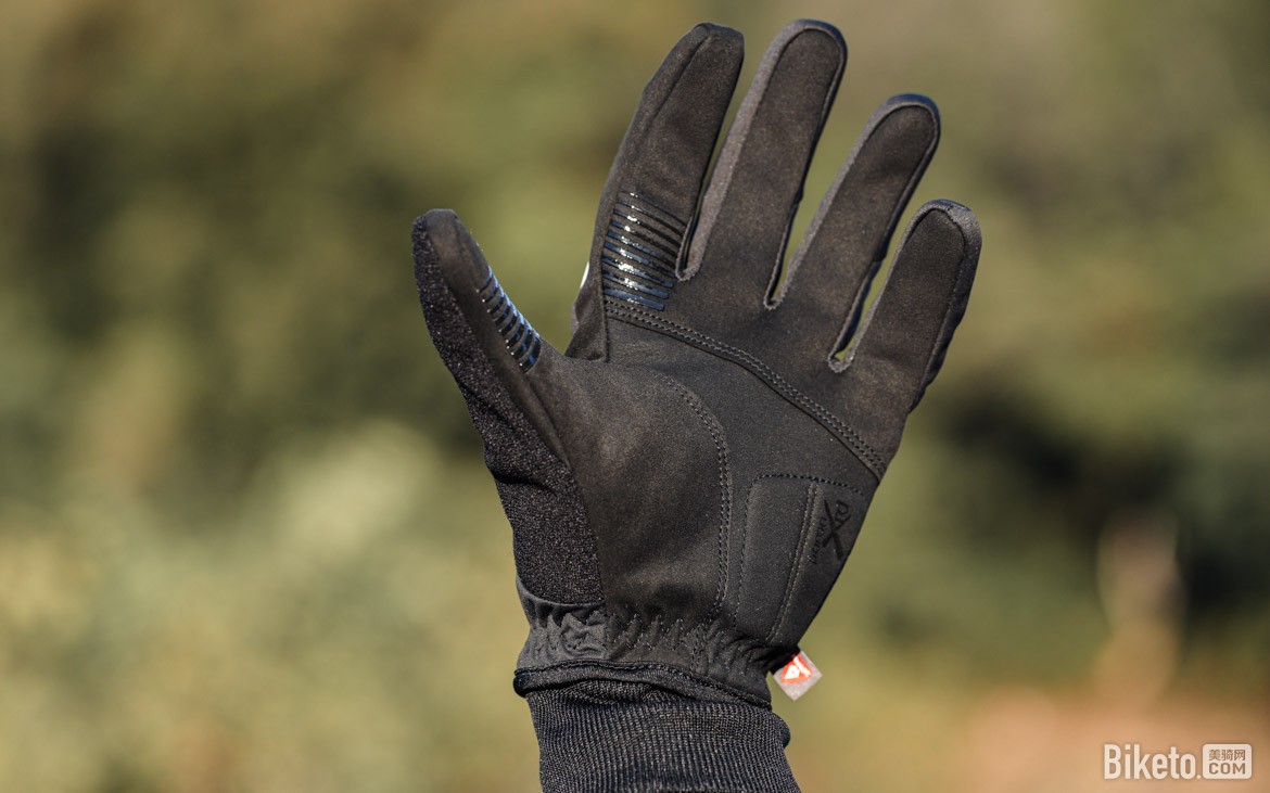 即便身为重型保暖款,操控性也毫不妥协:手掌同样采用AX超细纤维麂皮绒,避免厚重影响操作;掌心PORON XRD慢回弹衬垫,减震效果优秀,长途骑行更舒适。手指部分填充P棉,虽外观粗壮却精准解决指尖保暖薄弱问题;