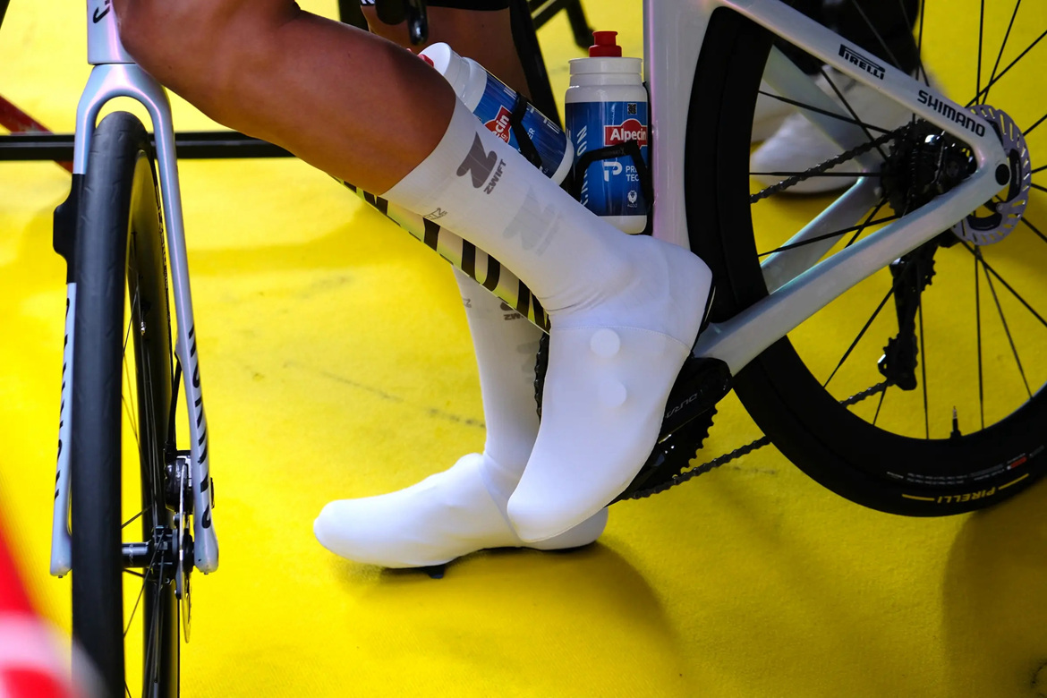 最后,让我们来谈谈开头就引起外媒注意的一个话题:各种类型的空气动力学袜子和鞋套的种类之多。即使在同一支车队内部,这些装备也存在相当大的差异。范阿尔特使用的鞋套在小腿部位带有空气动力学花纹。