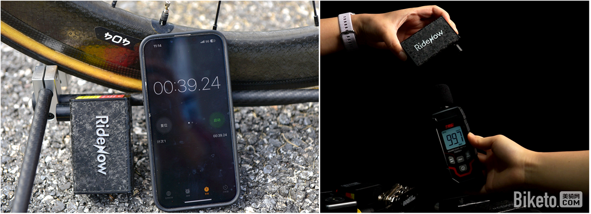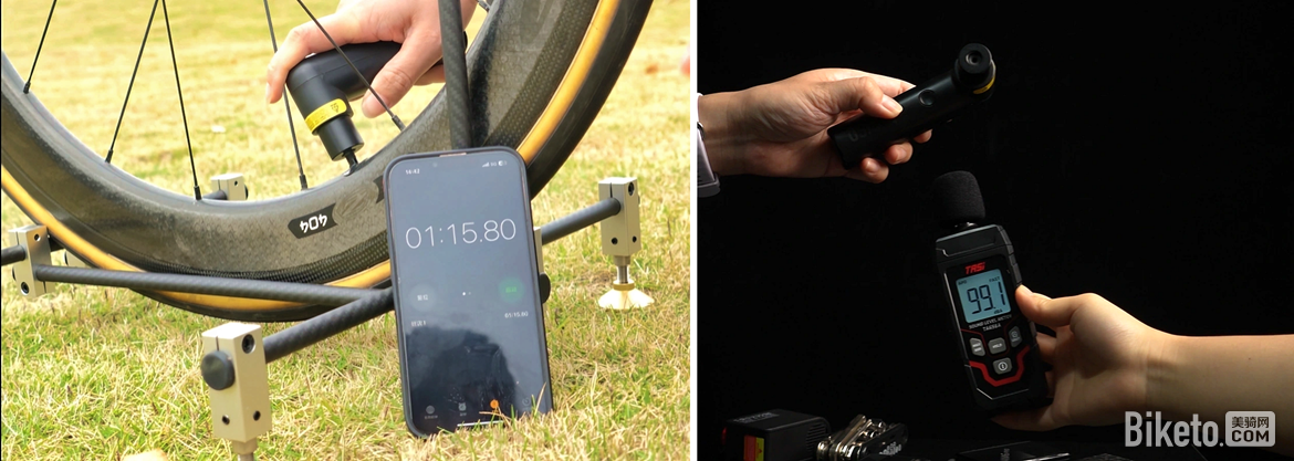 这一步测量的是每个打气泵单次打气的时间。虽然大部分打气泵显示最高可充胎压为120psi,部分甚至能达到150psi,但随着主流车胎产品建议胎压越来越低,会用到100+胎压的情况已经十分少了,因此这次测试选择了80psi作为标准测试,更贴近日常使用场景。