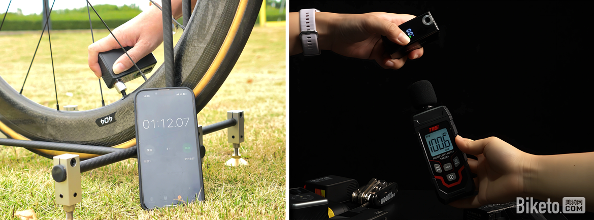 根据之前使用初代产品的经验,mini电动打气泵发热和噪音问题严重,为了此次横评,小编特意购入了分贝测量仪和气温测量仪。作为不太重要的元素,后面详细评测会放上数据,现在直接上结论,分贝方面相差其实并不大,室内确实噪音比较大,在室外环境下影响并不明显。在基础分贝34较为安静的室内,JIISO以99分贝作为噪音最小的产品,行者XOSS的AirCube以105分贝作为噪音最大的产品,其余均集中在100左右,差距十分微弱,比较有特色的是友骑的AM6 Pro,会发出好像牛叫的“哞哞”声,噪音十分的喜感。
