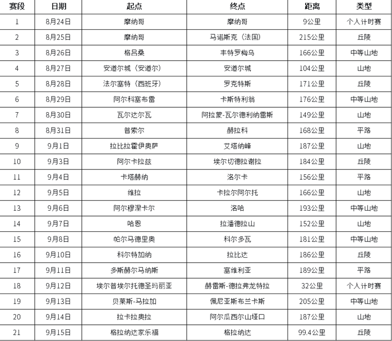 这届西班牙大环赛将在摩纳哥公国发车,以一场个人计时赛开启,随后进入法国,再至安道尔,并于第五赛段进入西班牙。