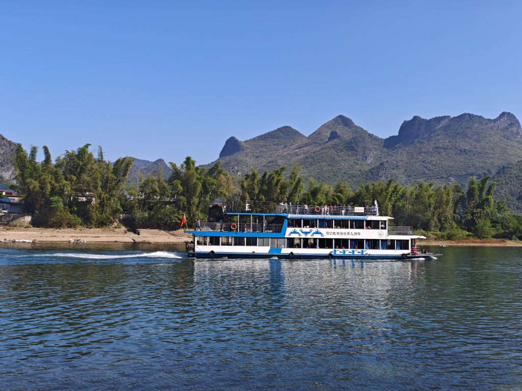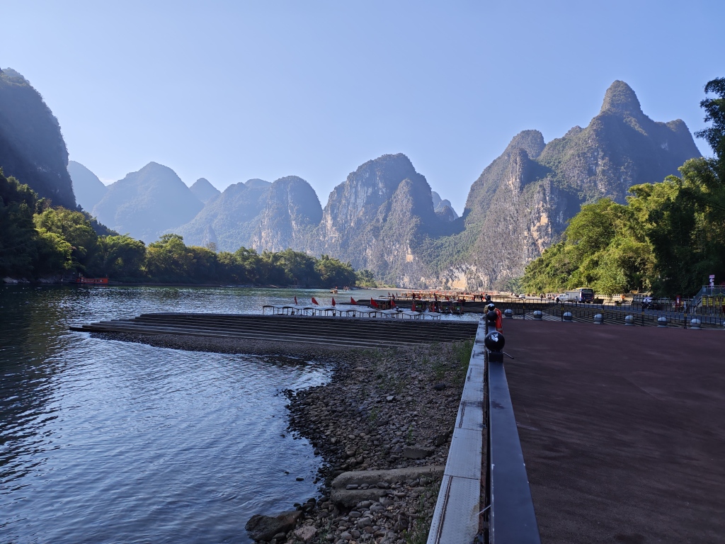 杨堤码头,这里曾经是主席考察漓江生态保护期间乘坐游船的起点,在杨堤码头打卡后沿着挂壁公路逆流而上欣赏漓江风景,此时宁静的小路加上沿途喀斯特风光让疲劳一扫而光。