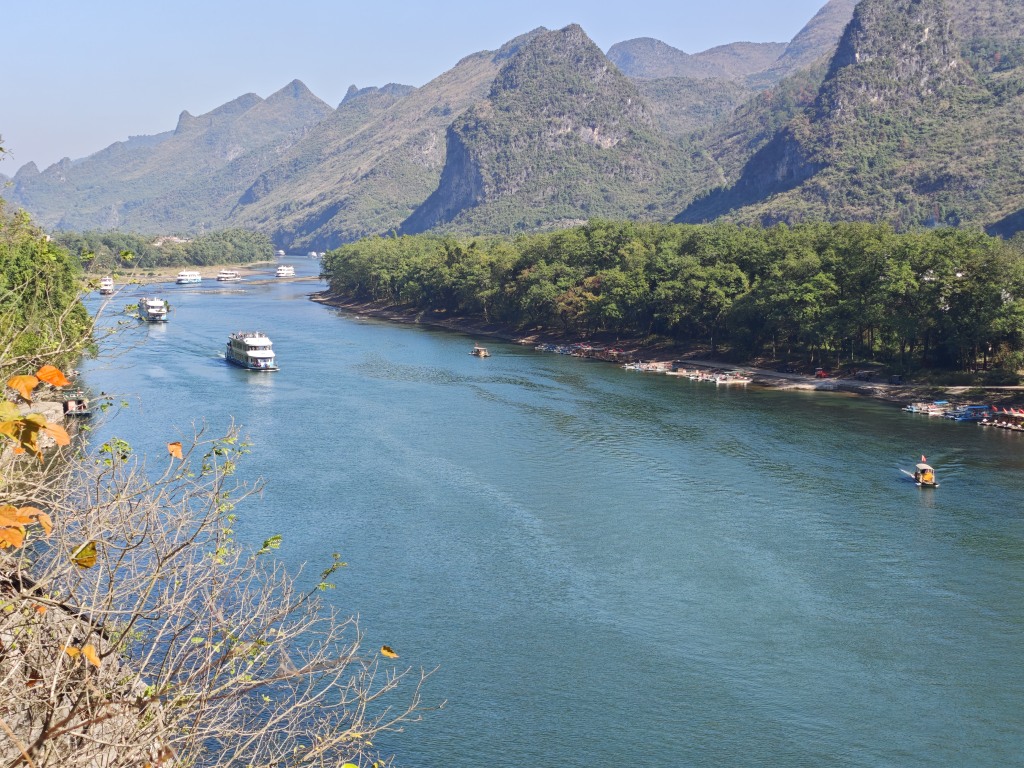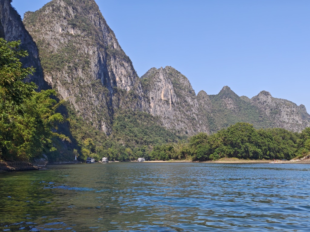 在半边渡可以眺望远处“姑娘山”,神似一位妙龄姑娘睡在这里,在漓江、毛竹、游船衬托下如同一副画卷。